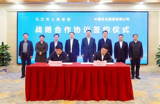 4月24日下午,中国林业集团有限公司与九江市人民政府在九江市武宁县签署战略合作协议。中林集团党委书记、董事长余红辉,九江市委书记刘文华出席并见证签约。中林集团党委委员、副总经理翁文林参加活动。中林(江西)林业投资开发集团有限公司董事长、总经理柳志伟与九江市副市长容长贵分别代表双方签署协议书。