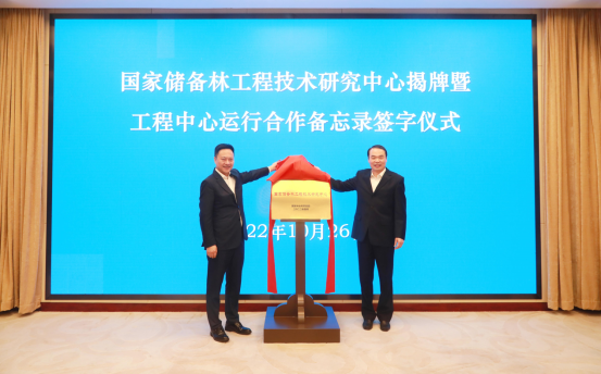 10月26日,在国家林草局的指导和推动下,由中林集团牵头,国家储备林联盟、北京林业大学、中国林业科学研究院热带林业研究所共同成立的国家林业草原国家储备林工程技术研究中心正式揭牌,标志着中林集团在探索实践科学营林造林,以国家储备林质量精准提升,推动国土绿化高质量发展上迈出坚实一步。国家林草局总工程师闫振,中林集团党委书记、董事长余红辉为工程中心揭牌,共同见证工程中心运行合作备忘录签署。