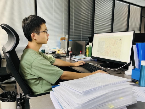 22岁的他不同于同龄人喜欢刷手机、玩游戏,他总喜欢跟在公司老大哥、老大姐的身后请教学习,从无人机林业应用到ArcGis系统使用,从资源调查评估到对接银行工作,他说得最多的一句话是,“要学习的东西还很多很多。”