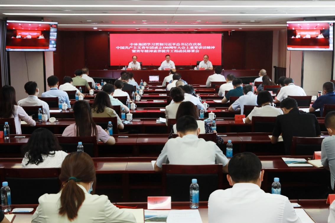 8月24日,中林集团召开会议,深入学习贯彻习近平总书记在庆祝中国共产主义青年团成立100周年大会上的重要讲话精神,认真落实国资委党委有关会议要求,部署实施青年精神素养提升工程,引领广大团员青年不断增强做中国人的志气、骨气、底气,争做堪当中林绿色低碳转型发展重任的青年先锋,以实际行动迎接党的二十大胜利召开。中林集团党委书记、董事长余红辉出席会议并讲授青年精神素养提升“第一课”,党委委员、纪委书记王云飞传达学习有关会议精神,党委副书记、董事刘连军主持会议。