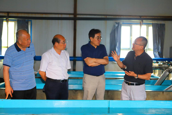 图为赛湖渔业负责人介绍赛湖冷水鱼良种繁育技术