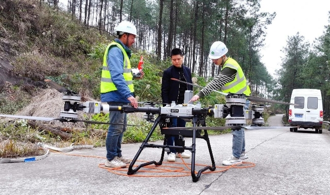 本次应用的共轴八旋翼大型载重无人机,直线距离500米的高落差地形中,调运1吨木材仅需45分钟即可完成运输任务,较传统骡马运输效率提升200%。通过北斗导航系统与智能路径规划,无人机可实现厘米级定位精度,在复杂地形中安全完成每小时8至12次往返运输。