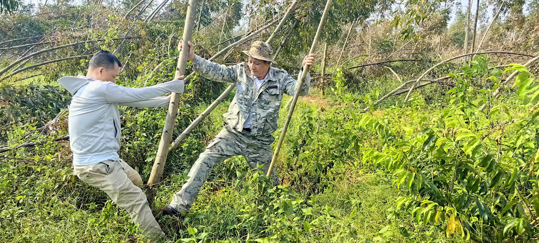 台风,是地处沿海地区的湛江林业必须面对的一大挑战。在应对2011年17号台风“纳莎”的抗灾复产过程中,杨林清与护林人员不知有多少个日夜守候在林地。为了把台风造成的损失降到最低,他带领职工群众想尽办法抢扶倒伏幼林,常常忙到下午两三点钟才吃中午饭,披星戴月下班是家常便饭,但他从来不叫苦,默默地坚持着。在这次抗灾复产中,杨林清和队友们共扶风倒幼林6237亩,拾回风倒木材16吨,最大程度减少了集体经济损失。