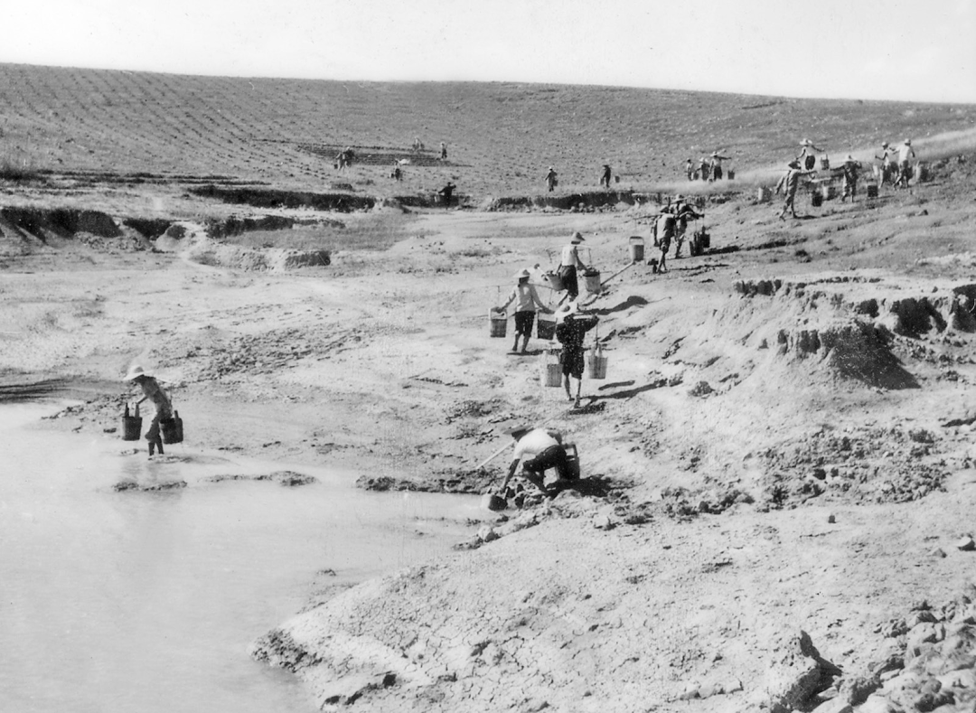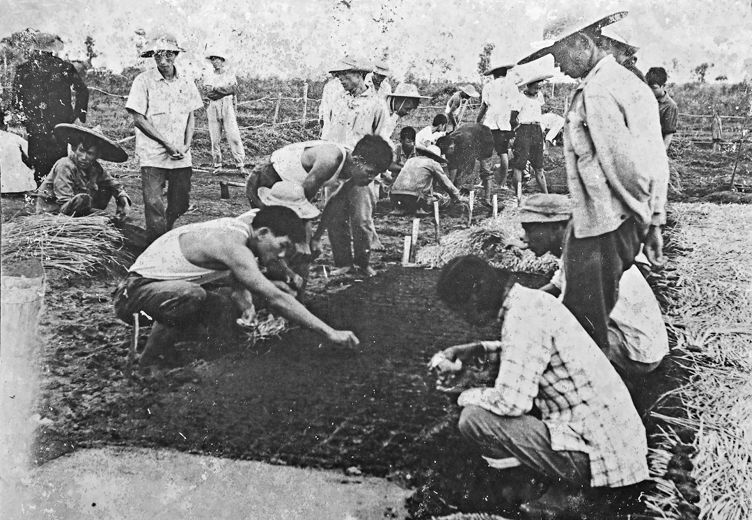 老一辈雷林人搭建茅棚,扎营荒山野岭植树造林。(1955年摄)