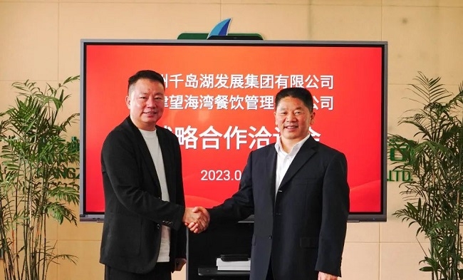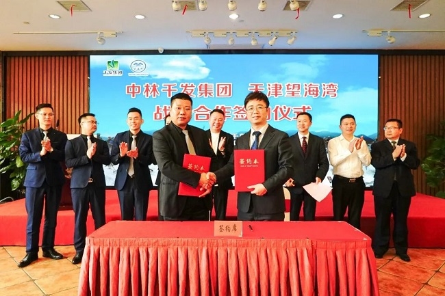 北京中林千岛湖商贸有限公司总经理汪子夏与天津望海湾餐饮采购部经理马振东分别代表双方签订协议。