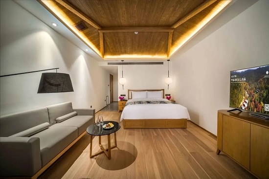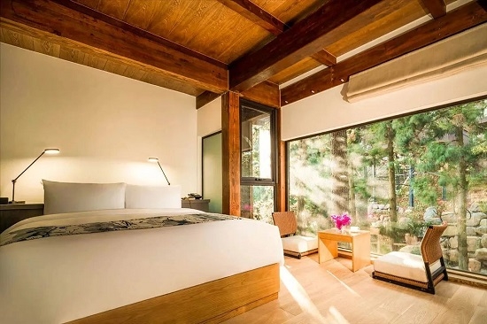 酒店将体验式度假与生态环境完美融合,森林覆盖率达90%以上,负氧离子含量比城市高出1100多倍。推开窗便能置身于原始纯粹的大自然中。依托天然“曲水流觞”式生态地貌,沿线打造5大主题度假别墅群。隐世山林之中,潺潺溪水伴随着悦耳鸟鸣,仿佛与世隔绝,于自然奢华中寻求心灵的治愈。