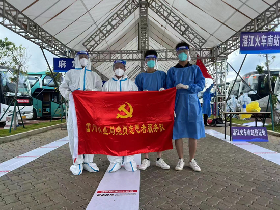 中林集团雷林公司组织党员志愿者服务队,积极参与湛江市疫情防控工作。党员志愿者服务队始终坚持以“围绕中心、服务大局、服务群众”为宗旨,闻令而动、亮明身份,冲锋在抗击疫情第一线,协助地方做好疫情防控工作,充分发挥了共产党员先锋模范带头作用,展现“一名党员就是一面旗帜”的共产党员形象,为湛江市疫情防控作出积极贡献。