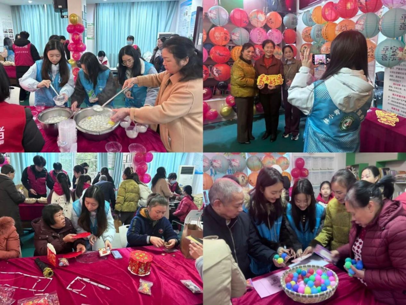 中林湘投“林小青”志愿者服务队走进桐荫里社区,参加“喜乐元宵、情暖邻里”主题游园会志愿服务活动。志愿者们分工协作,在元宵发放处将一碗碗热气腾腾的元宵递到居民手中。在灯笼制作区,志愿者们耐心讲解制作步骤,指导居民裁剪灯面、组装灯架,用贴心服务为社区居民送上节日温暖。