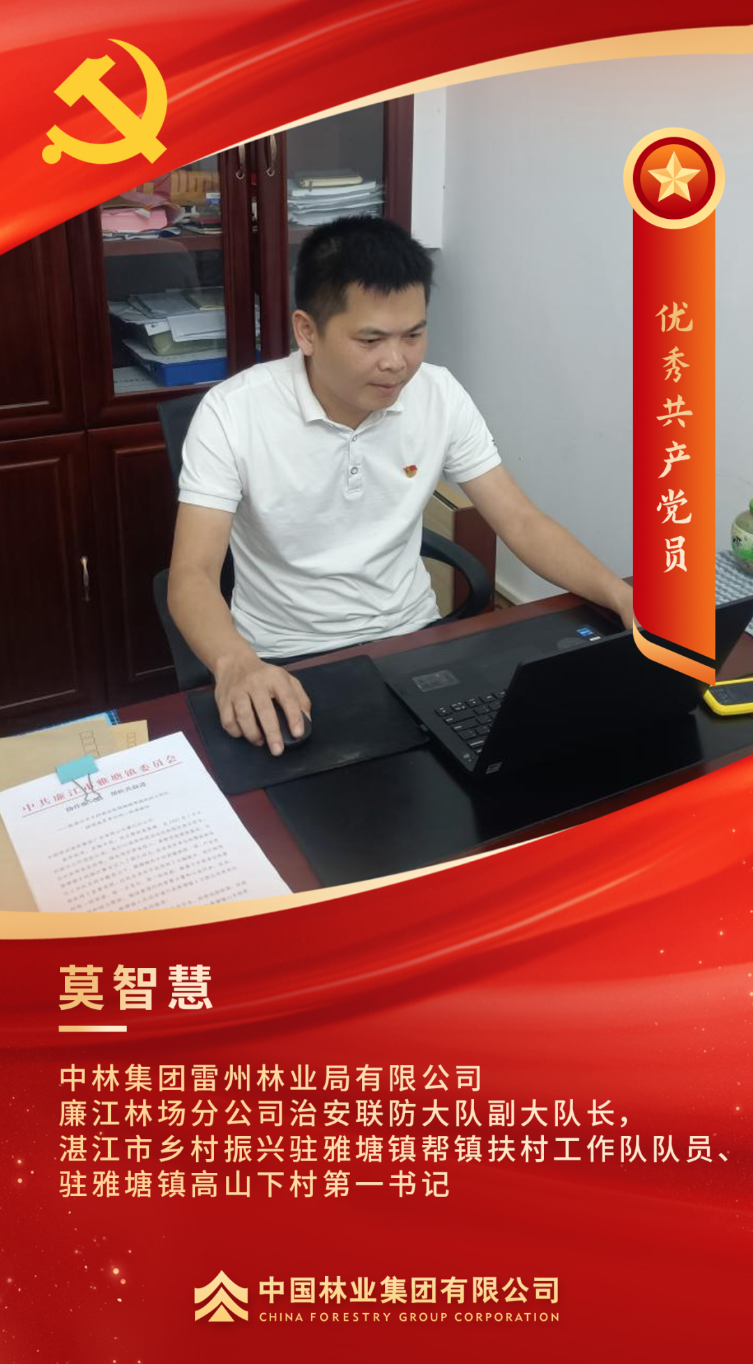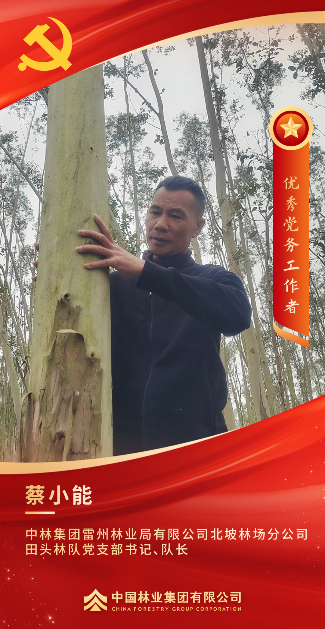 荣获集团党委“优秀党务工作者”的称号,我内心充满喜悦,也满怀感恩之情。守林护林工作不仅仅是植树造林、防火防虫那么简单,它更是一份沉甸甸的生态责任和社会担当。作为党员干部,我要将“绿水青山就是金山银山”的理念深植于心、外化于行,让党旗在林场这片绿色林海高高飘扬,引领生态保护和企业可持续发展。