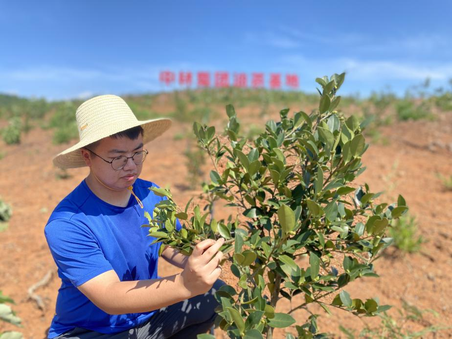 中林集团祁阳高标准油茶基地里,一线员工童海浪正在检查油茶苗生长情况,为迎战酷暑考验做着充足准备。