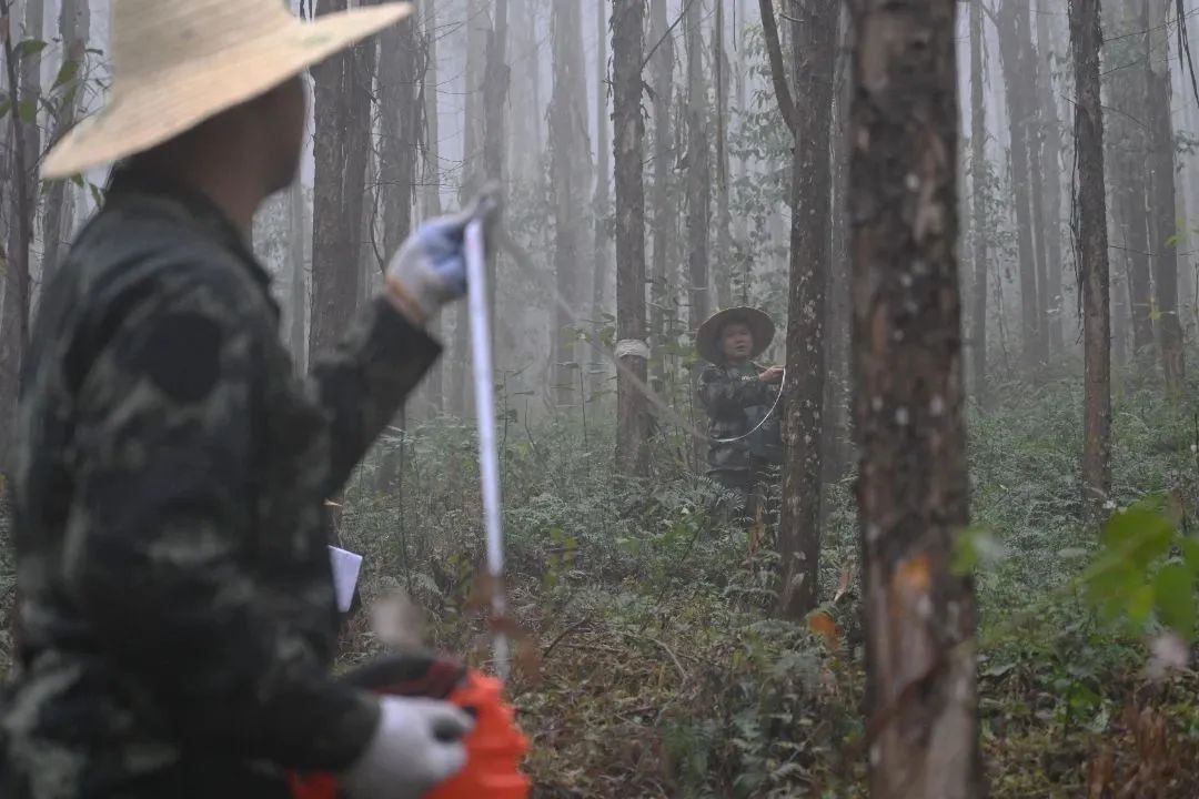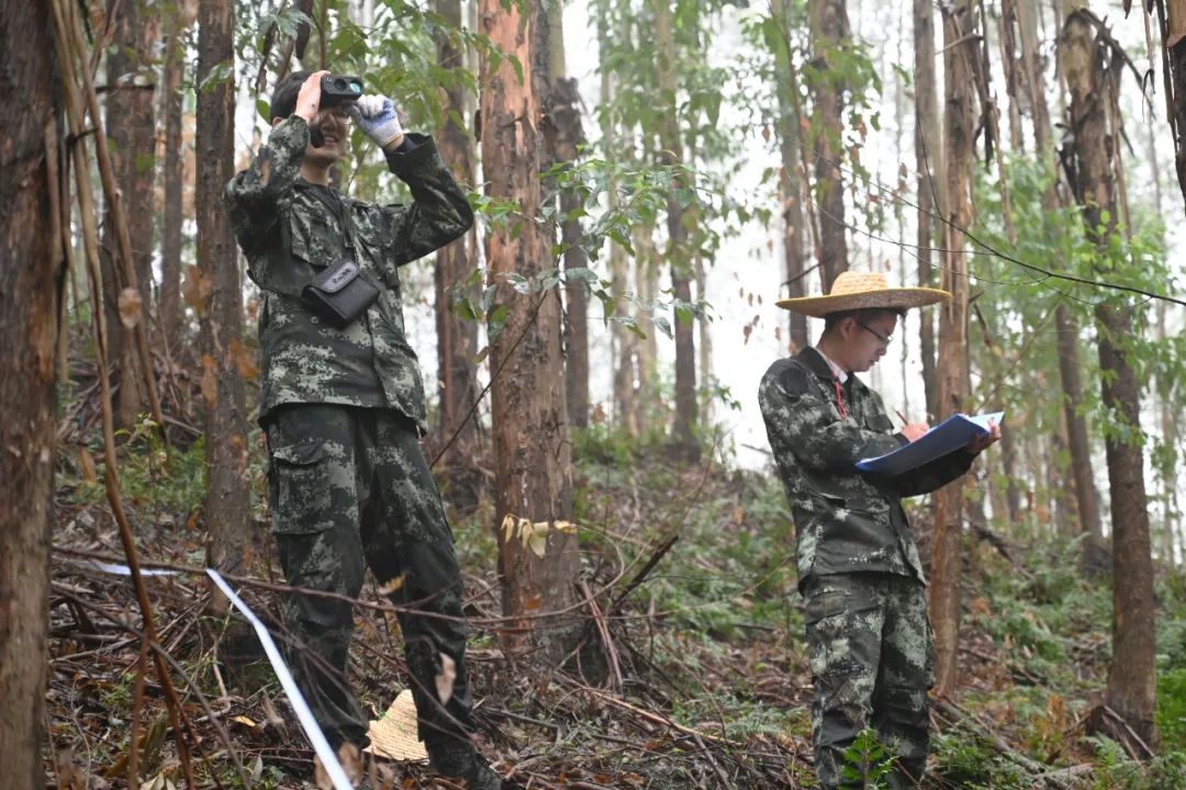 号令声响,参赛队伍迅速奔赴各考试林地区域测量数据,全神贯注、配合默契,伴随着现场此起彼伏的报数声,一项项数据被高效测量、记录。