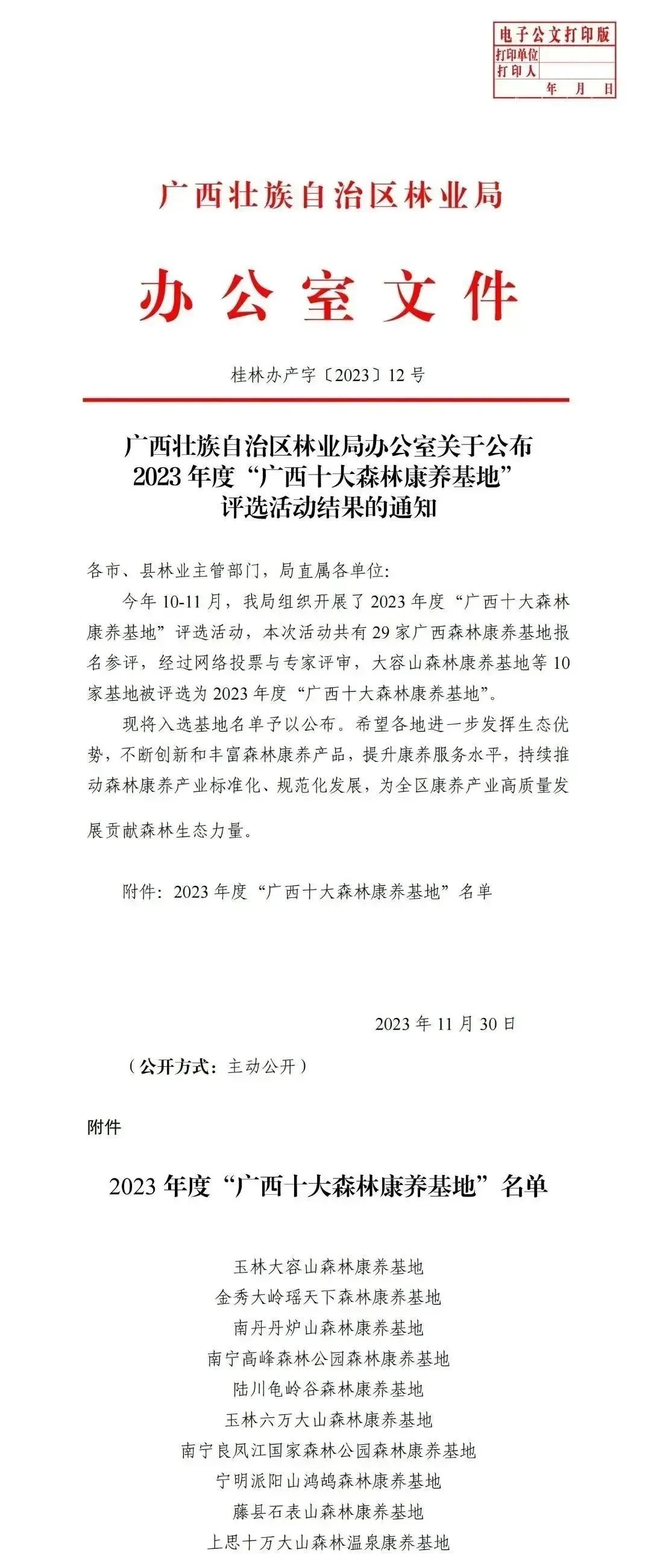 快来打卡!中林良凤江国家森林公园获评“广西十大森林康养基地”之一