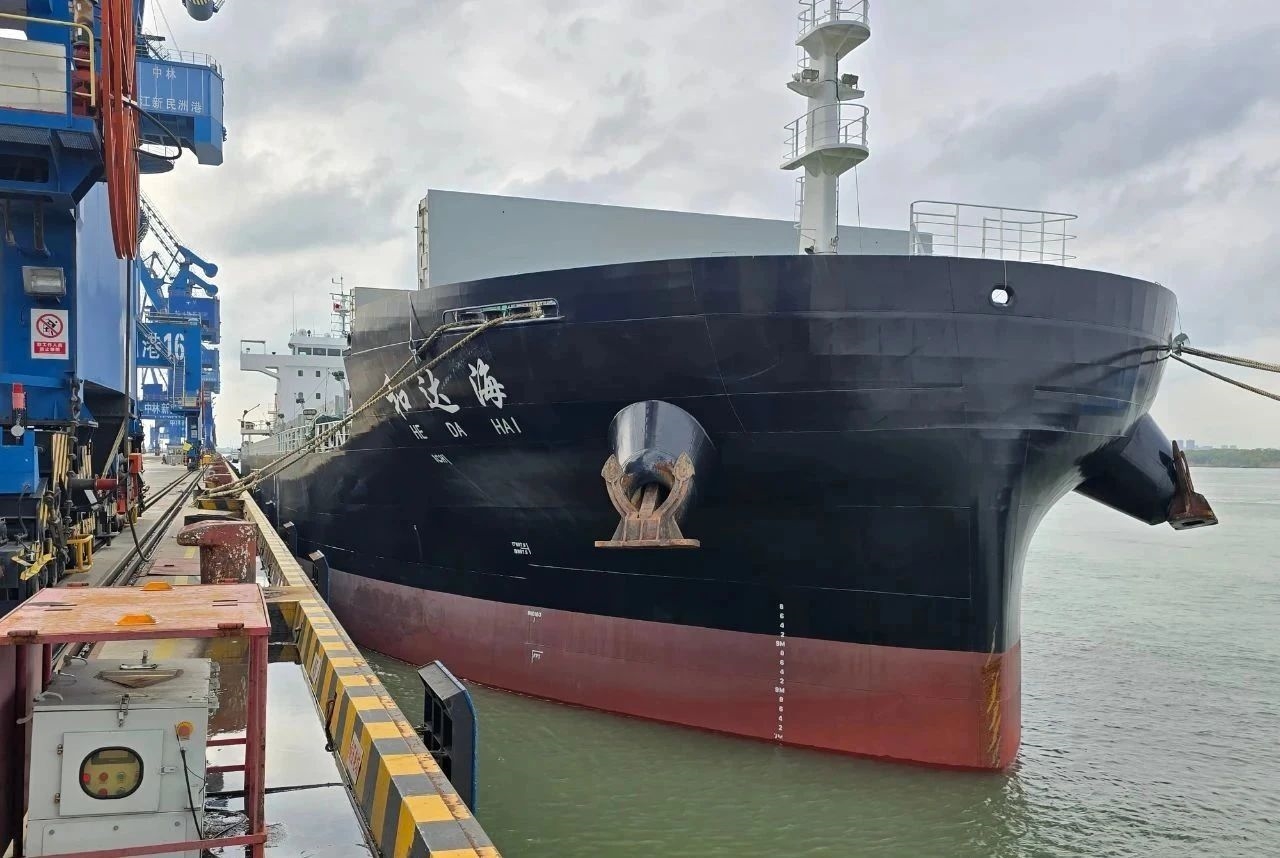 近日,中林新民洲港迎来了一项重大突破,随着装载15000立方米日本柳杉原木的“和达海”轮安全靠泊中林新民洲港,创造了全国港口单船接卸柳杉原木最高方量纪录。