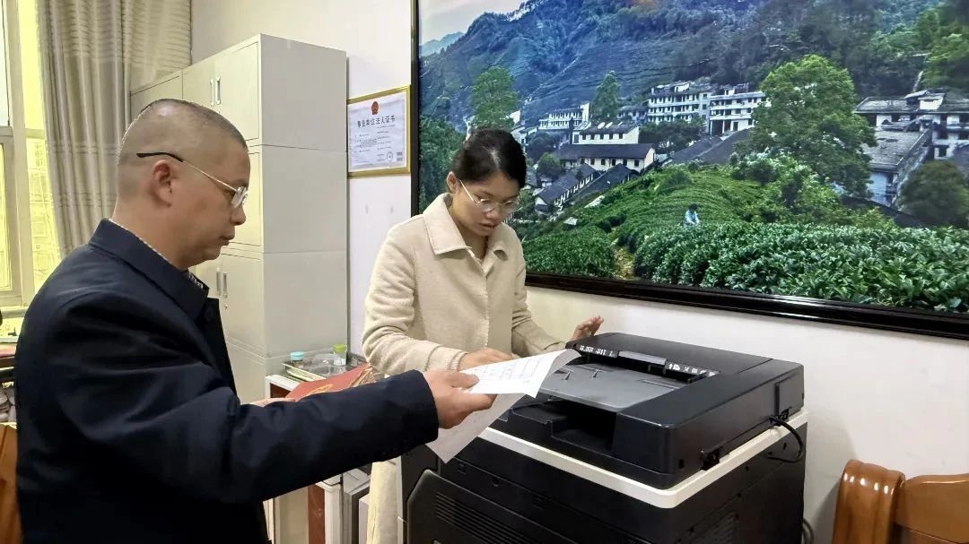 ▲昭平县首批国储林项目不动产权证打证扫描现场